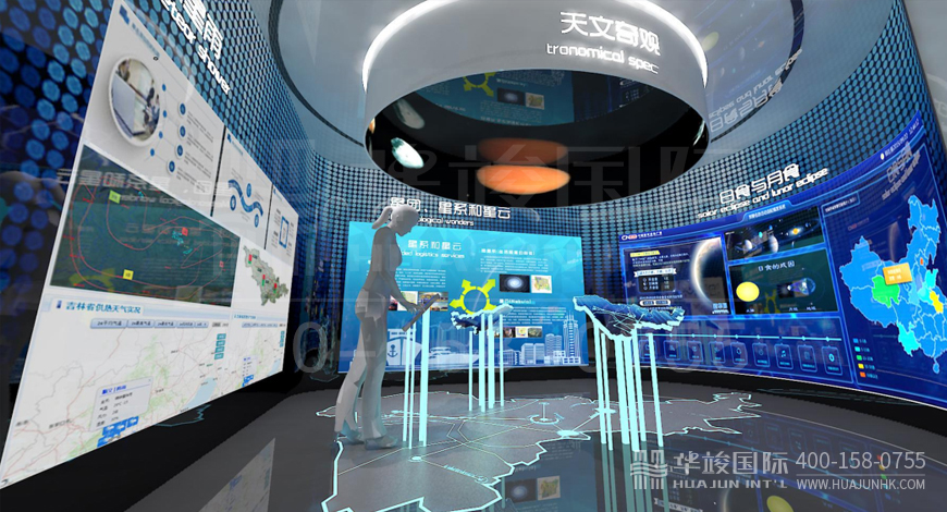 該館以“感知宇宙”“認知宇宙”“探索宇宙”為主題,50余個展項利用互動投影、懸浮投影、物體跟蹤、人體捕捉、體感互動、VR等高科技手段展示藏地的神奇,揭示宇宙的奧秘。這些現(xiàn)代化的技術(shù),華竣國際都輕車熟路地運用在我們打造過的眾多案例中。